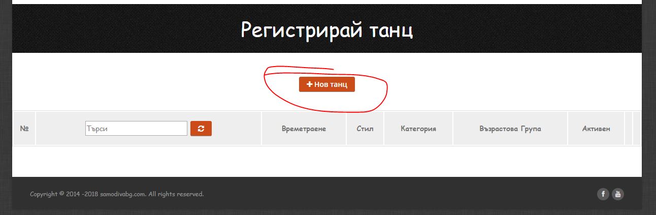 Стъпка 6. Когато въведете всички членове на клуба, които ще участват във фестивала, моля натиснете бутона „РЕГИСТРИРАЙ ТАНЦ“, после „НОВ ТАНЦ“