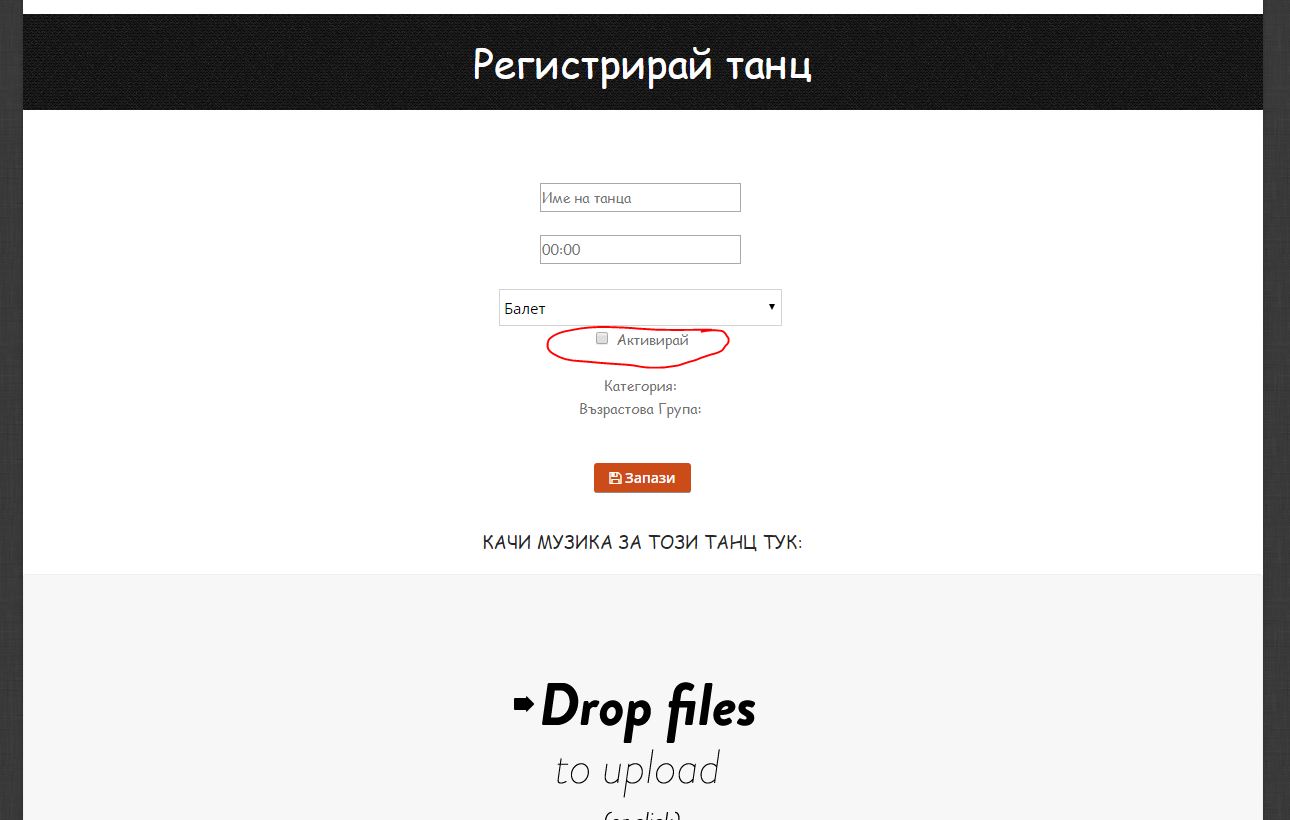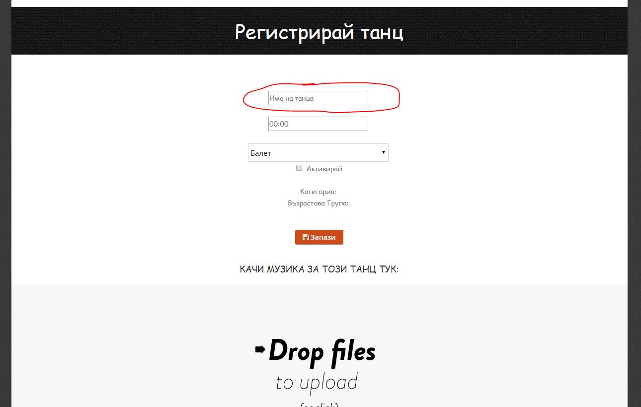 Без да сте въвели музика за танца, заявката е невалидна и не се приема от системата. Музиката трябва да е в MP3 формат!