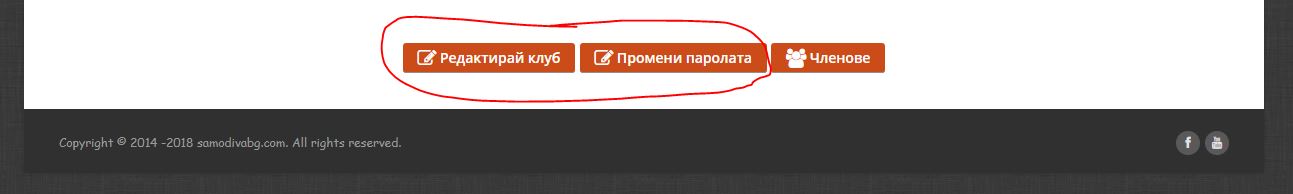 Стъпка 1. За да редактирате информацията за клуба ви или да смените паролата си, моля натиснете бутона „МОЯТ КЛУБ“ –„РЕДАКТИРАЙ КЛУБ“ или „ПРОМЕНИ ПАРОЛАТА“.