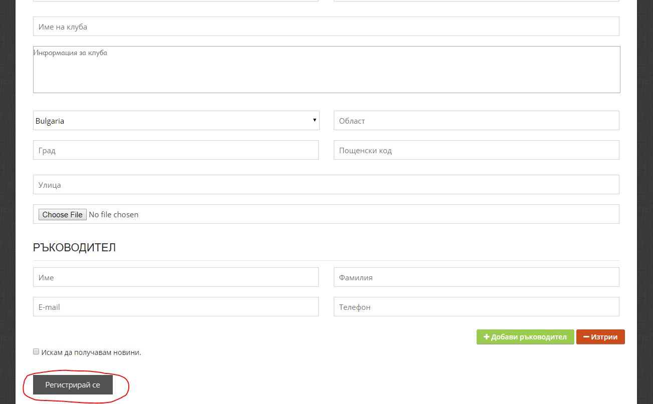 Стъпка 3. Един клуб може да има повече от един ръководител. Ако желаете да добавите ръководител/и моля, натиснете бутона „ДОБАВИ РЪКОВОДИТЕЛ“ и въведете данните за него.